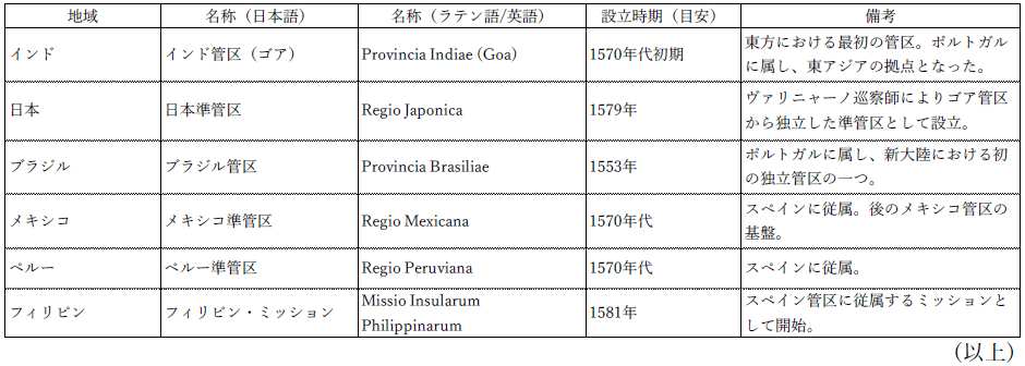 (参考②)16 世紀のイエズス会の管区・準管区一覧